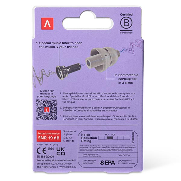 Med Alpine PartyPlug ørepropperne, er det reelt som at skrue ned for musikken. Den vil derfor være et lavere og mere sikkert niveau, mens alle detaljerne stadig går klart igennem. Desuden kan du langt nemmere tale med resten af selskabet, da det akustiske filter også lader tale gå tydeligt igennem.